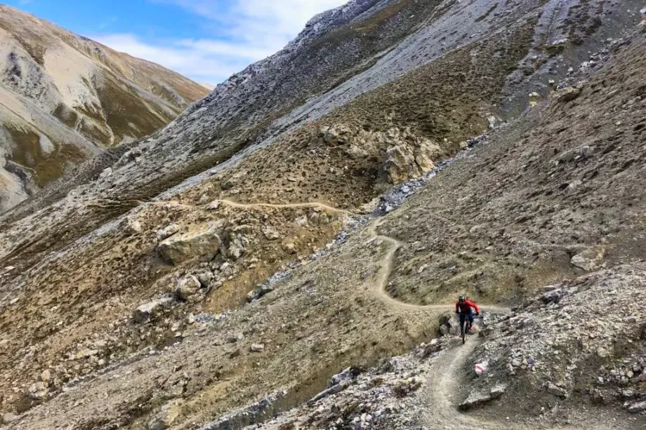 From here, we drop into a fast, sometimes technical singletrack descent, followed by a 4 km flat forest road leading us to the entrance of Val Viola. The climb—around 10 km—winds through rolling singletrack and gravel roads, bringing us close to the pass after a well-earned lunch at a stunning alpine hut by the lake.