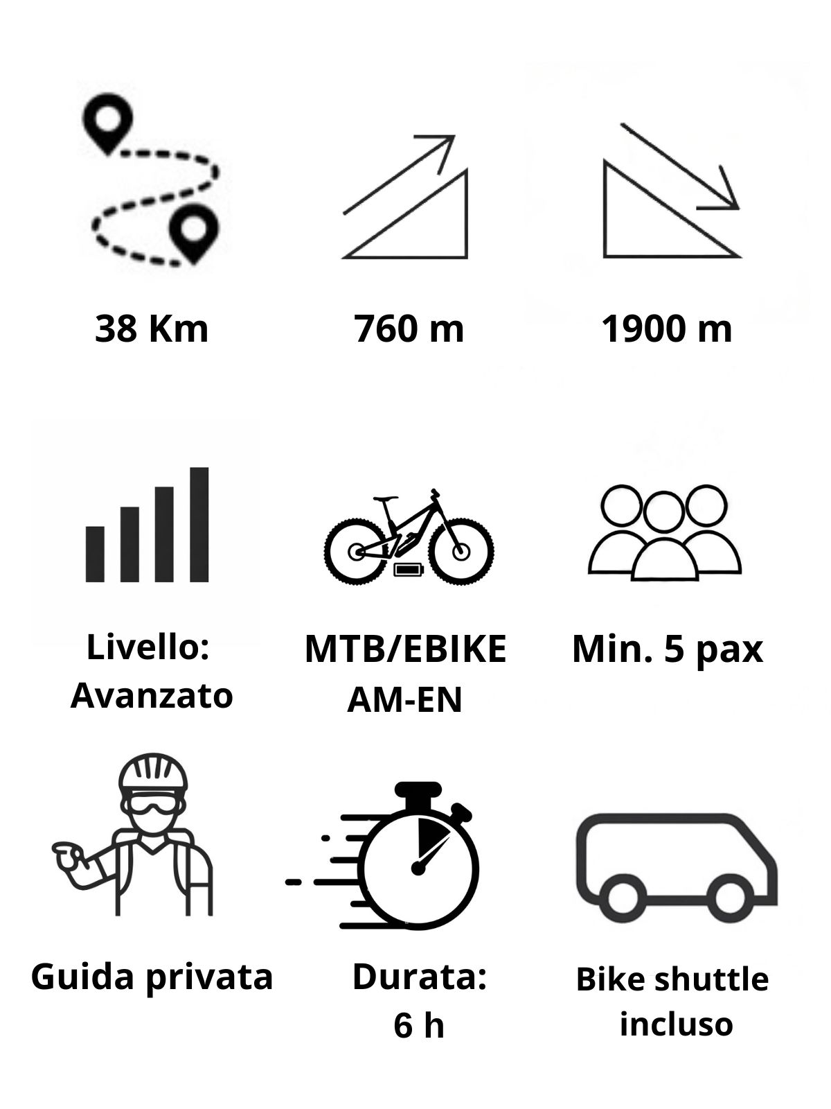 Dal passo, situato sul confine italo-svizzero, parte un’ adrenalinica discesa in single-track che ci porta in Val di Camp dove, prima di giungere a Sfazù, possiamo ammirare la meraviglia del Lach da Val Viola, immerso in un fiabesco bosco di larici. L’ultimo tratto per raggiungere Angeli Custodi è una mulattiera flow dove si raggiungeranno delle velocità importanti!