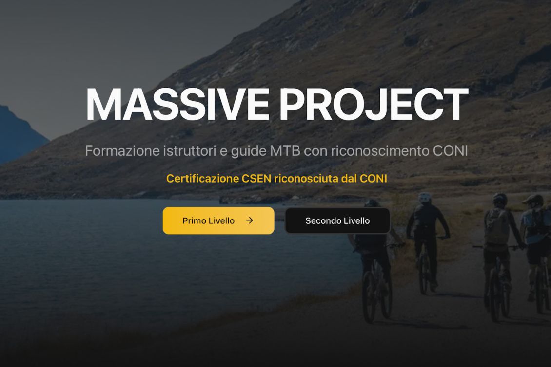 Entra nel mondo dei professionisti della MTB. Con i corsi di formazione MASSIVE PROJECT diventi guida/istruttore MTB qualificato, pronto a lavorare con competenze reali.